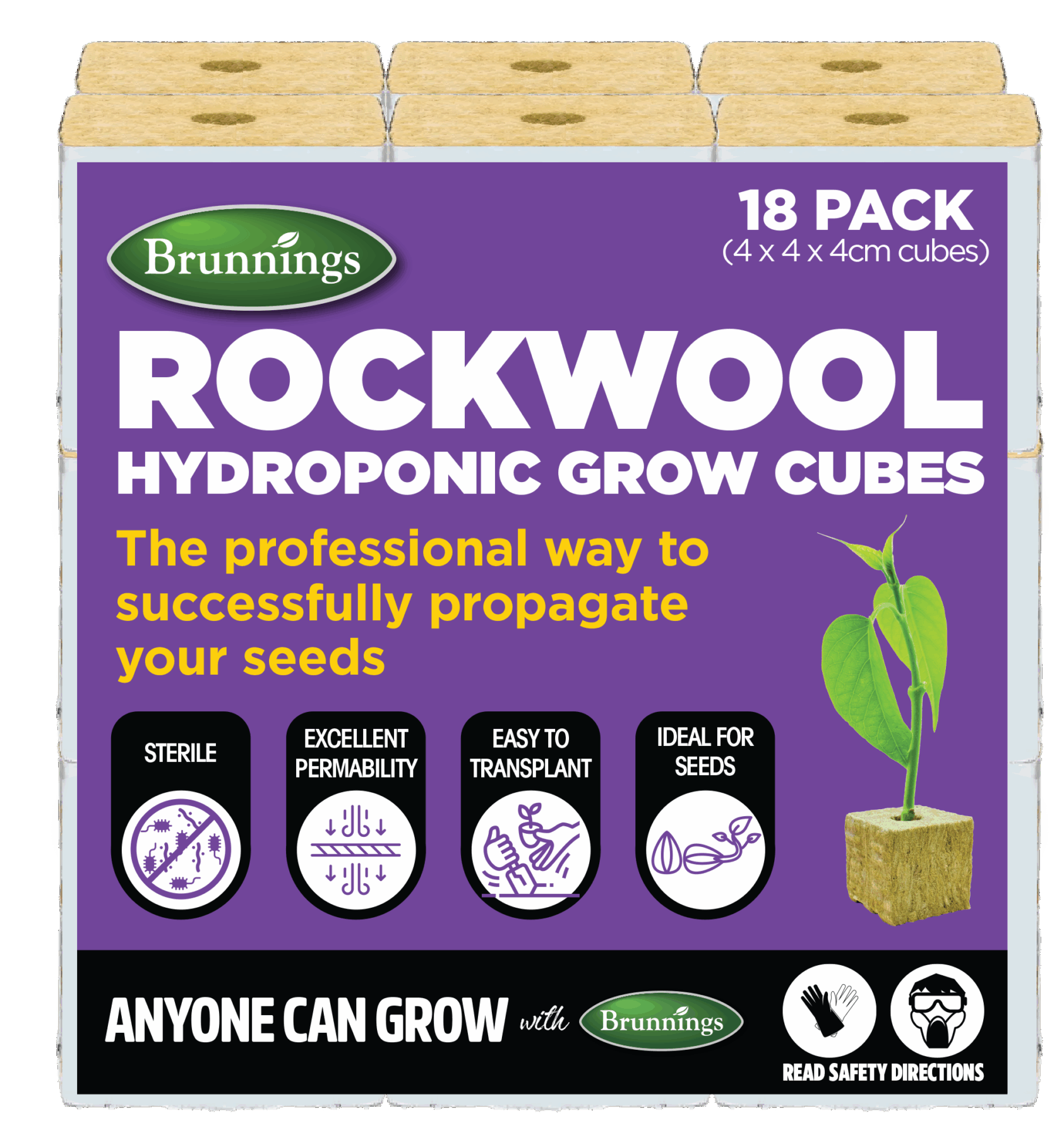 The Brunnings Hydroponic Rockwool cubes are widely used for hydroponics, seed starting, plugging, plant propagation and more, making them an excellent choice for hobbyists and commercial growers.