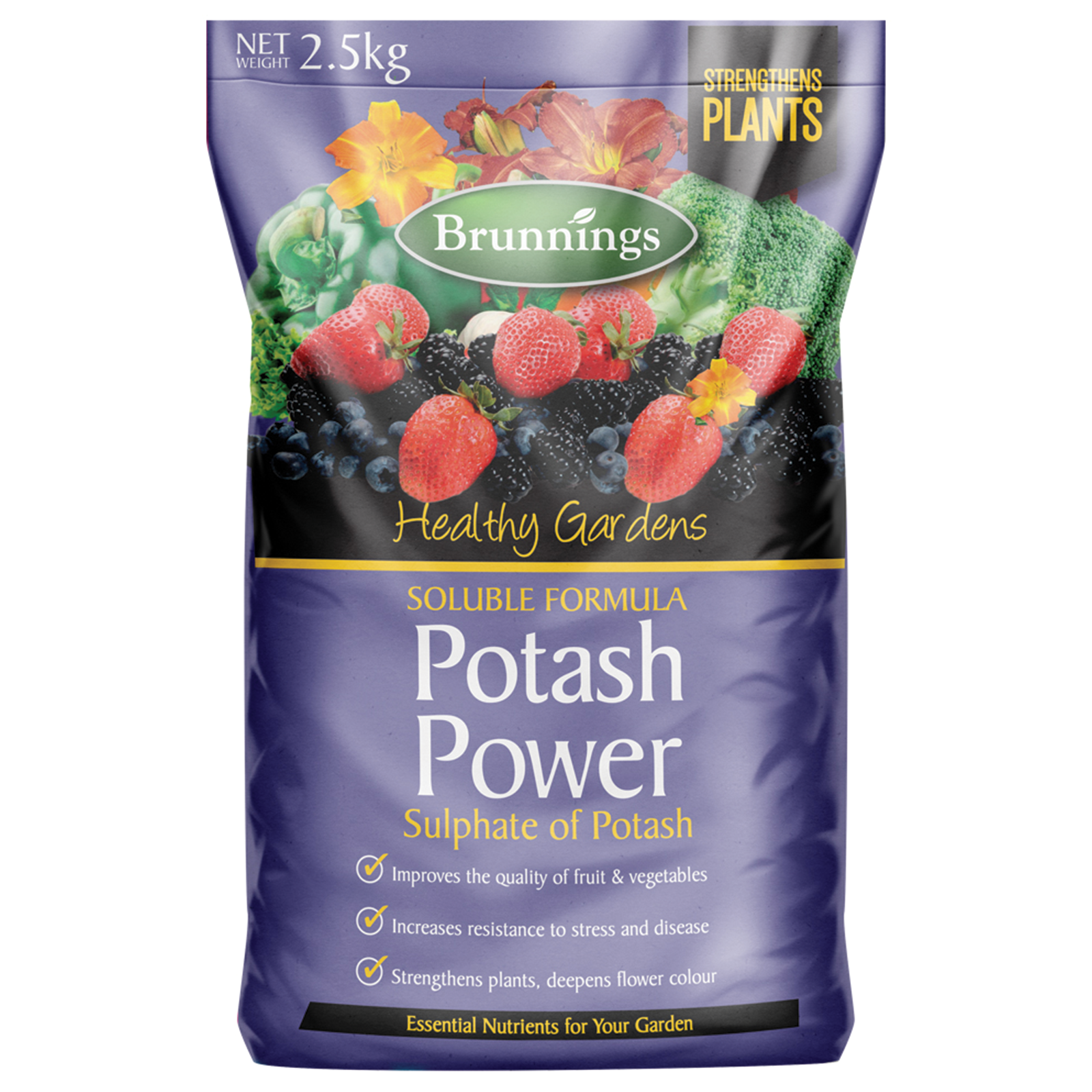 Brunnings Potash Power is a rich source of potassium for the home garden. Potassium is essential to all plants, but is required in larger amounts by vegetables, flowers and crop bearing trees. The increased potassium levels will also create deeper colour in flowers, stronger stems and help increase your garden’s resistance to stress and fungus disease.