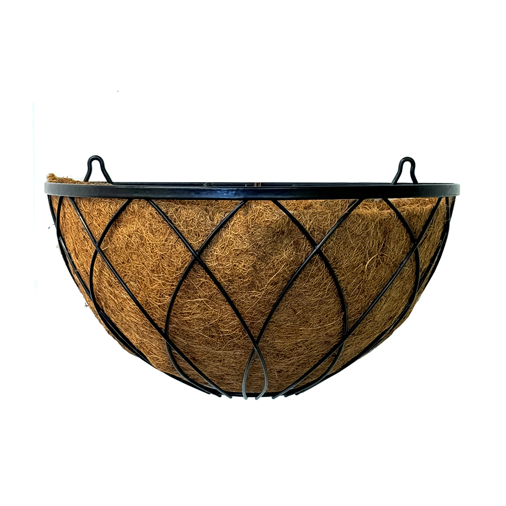 Perfect for showcasing colourful annuals or trailing plants, the 40cm Renaissance Wall Basket from Brunnings is constructed from durable heavy-duty wire and is designed with a flat back so it can sit flush against a wall or fence. This basket includes a natural, long-lasting coconut-fiber liner to hold your choice of premium potting mix and beautiful plants and features a black powder-coated finish.