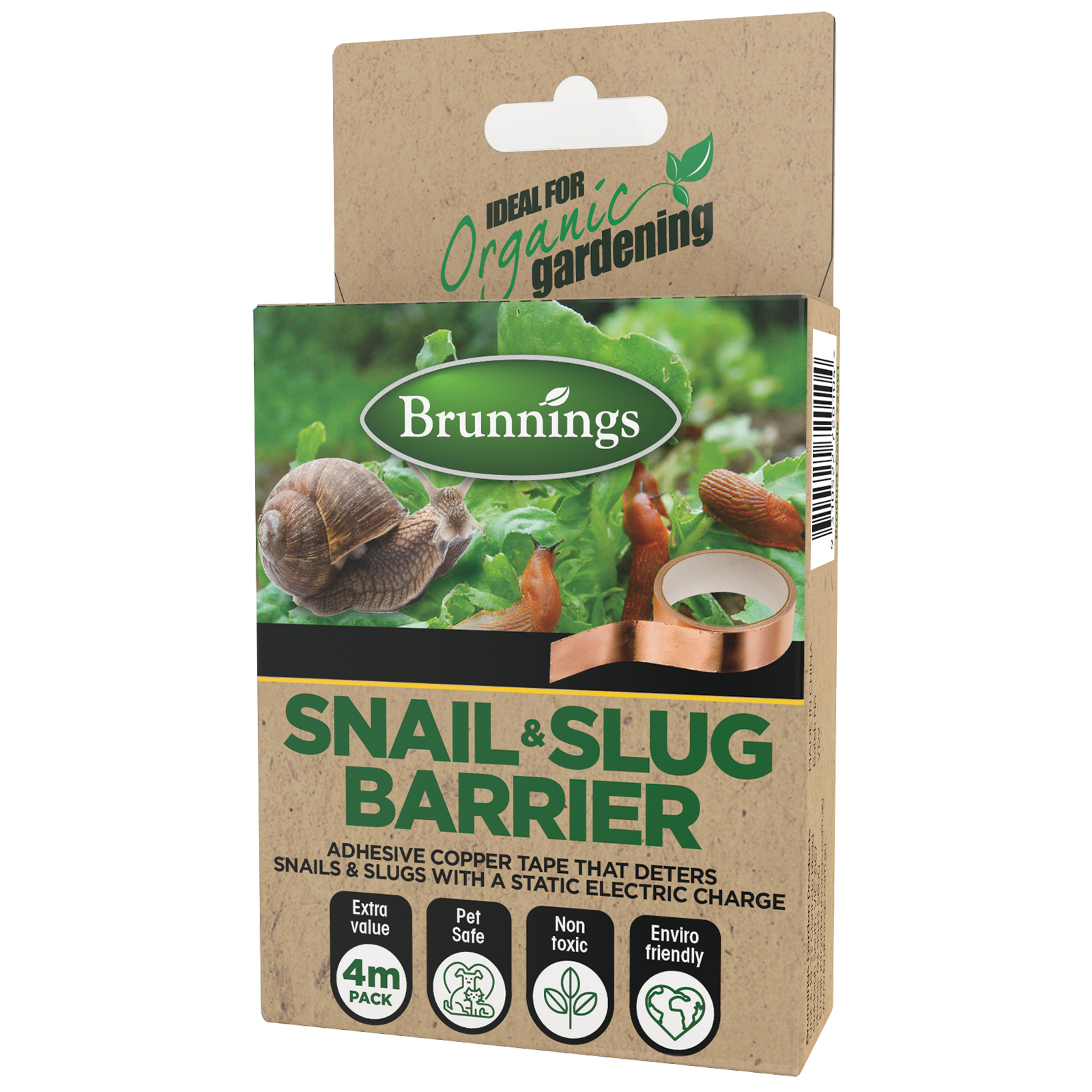The Brunnings 4m Snail & Slug Barrier Insect Trap has a copper tape that forms a barrier around pots, greenhouses, and garden beds, emitting a small electrical charge when a slug or snail attempts to cross.