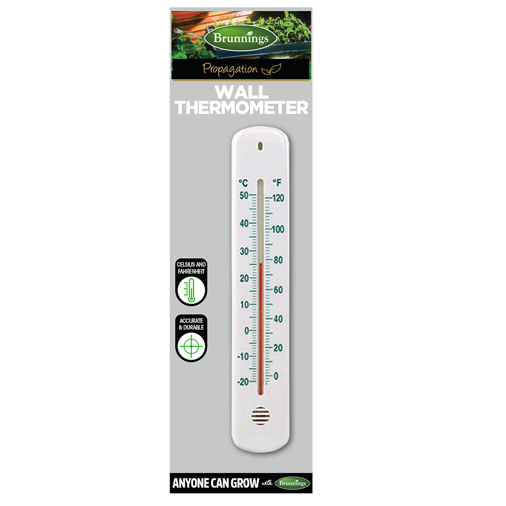 The Brunnings Wall Thermometer is an accurate and durable plastic thermometer for use around the garden and home. Keep an eye out for frost with an easy to read garden wall thermometer.